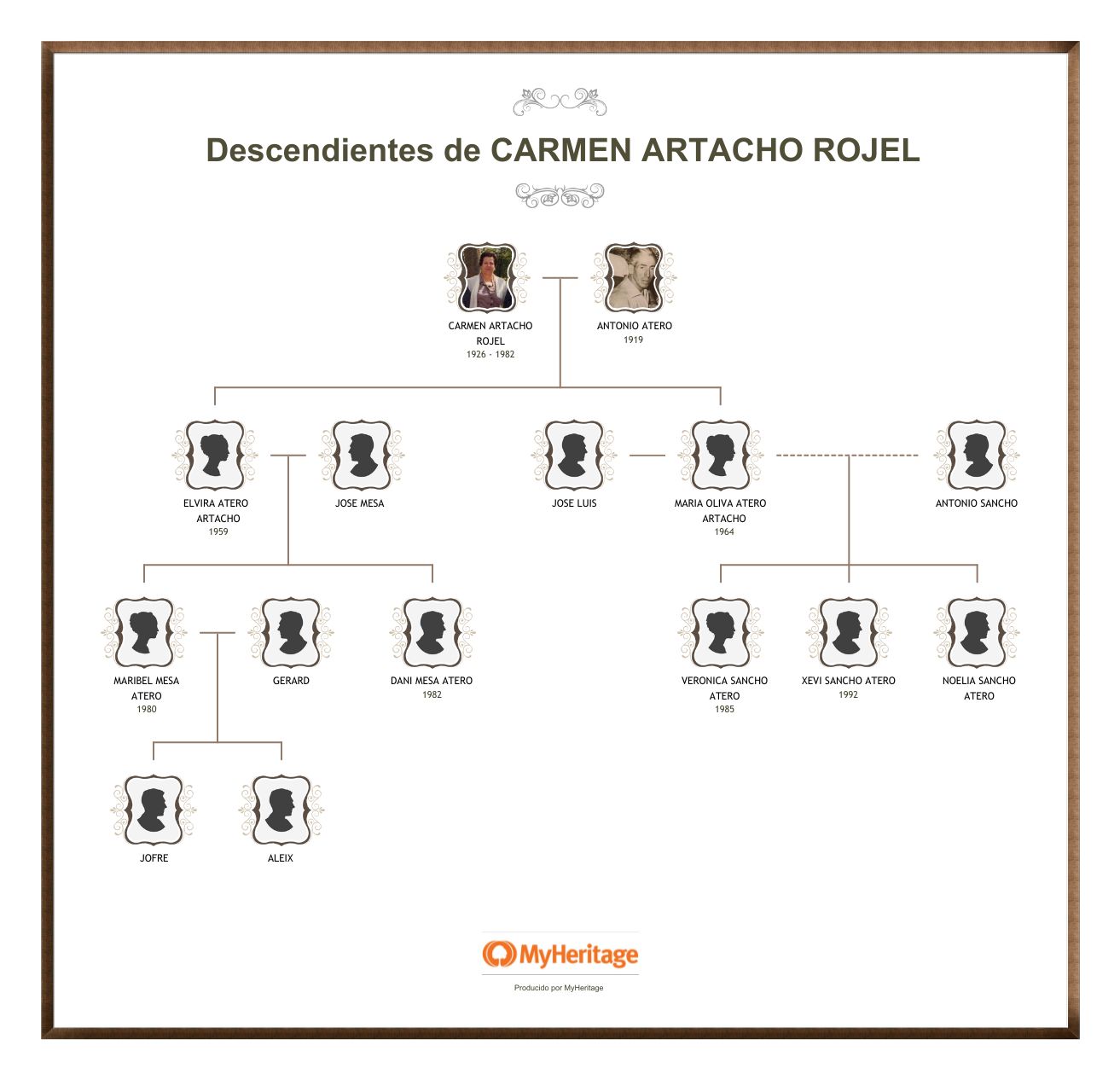 y ahora el cuadro con los nietos y bisnietos aportados con cada hijo.