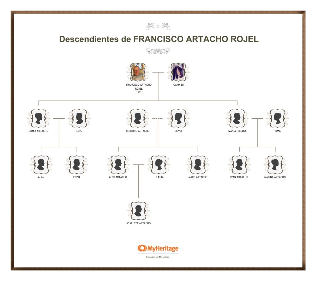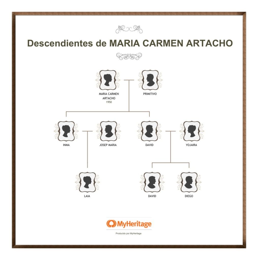 A continuación el cuadro con los hijos, nietos y bisnietos de CARMEN ARTACHO: