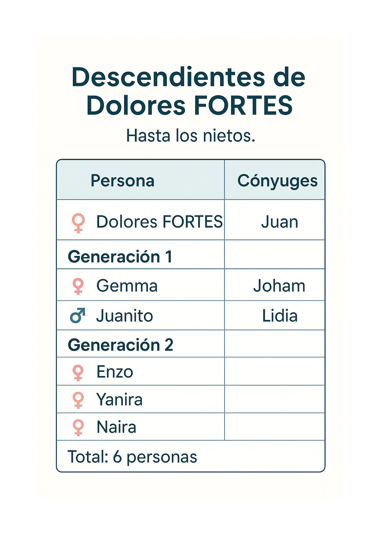 y ahora el cuadro con los nietos aportados con cada hijo.